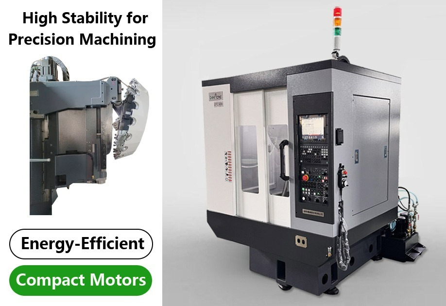 1.Space Savings : 60% more compact: The footprint is reduced by approximately 60% compared to standard machine tools. With the same spacing, the front machine setting ratio is 3:2.